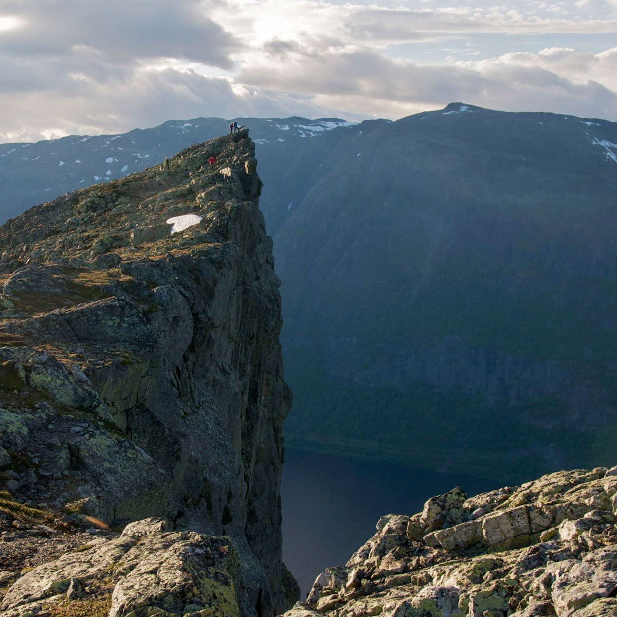 Når du endelig passerer "Ukseporten", det sidste sving før du når bjergplateauet på toppen, kan vi varmt anbefale at fortsætte mod varden på toppen (se kort nedenfor). Herfra har du en fantastisk udsigt ned mod Vang og Vangsmjøse, som ligger tusind meter nedenfor dig.
