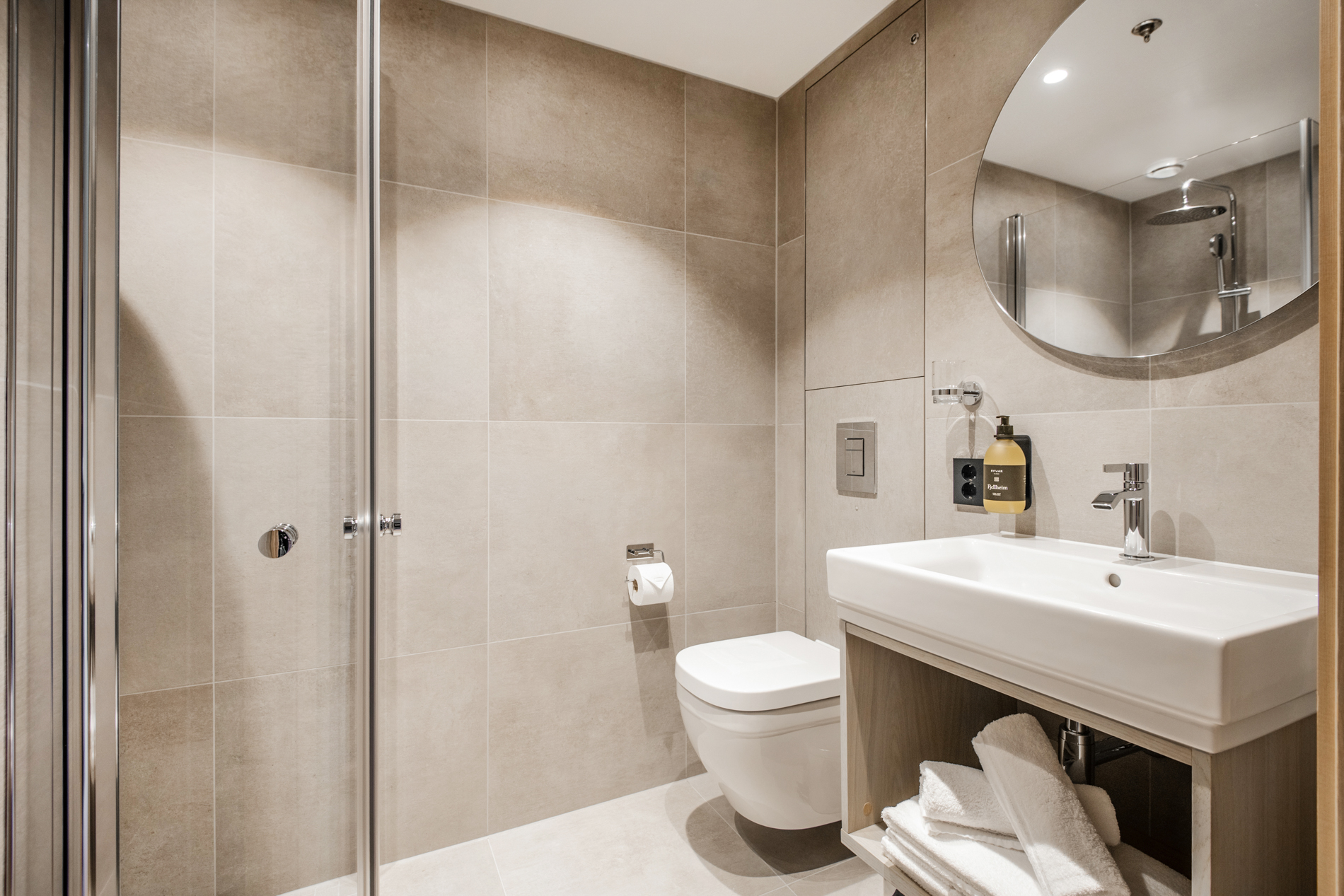 Vores dobbeltværelser har to enkeltsenge. Værelset har store vinduer med udsigt og masser af naturligt lys. Nogle af vinduerne kan åbnes for ventilation, og vinduerne har solskærme med individuel justering. Badeværelset er moderne indrettet og er udstyret med regnbruser.