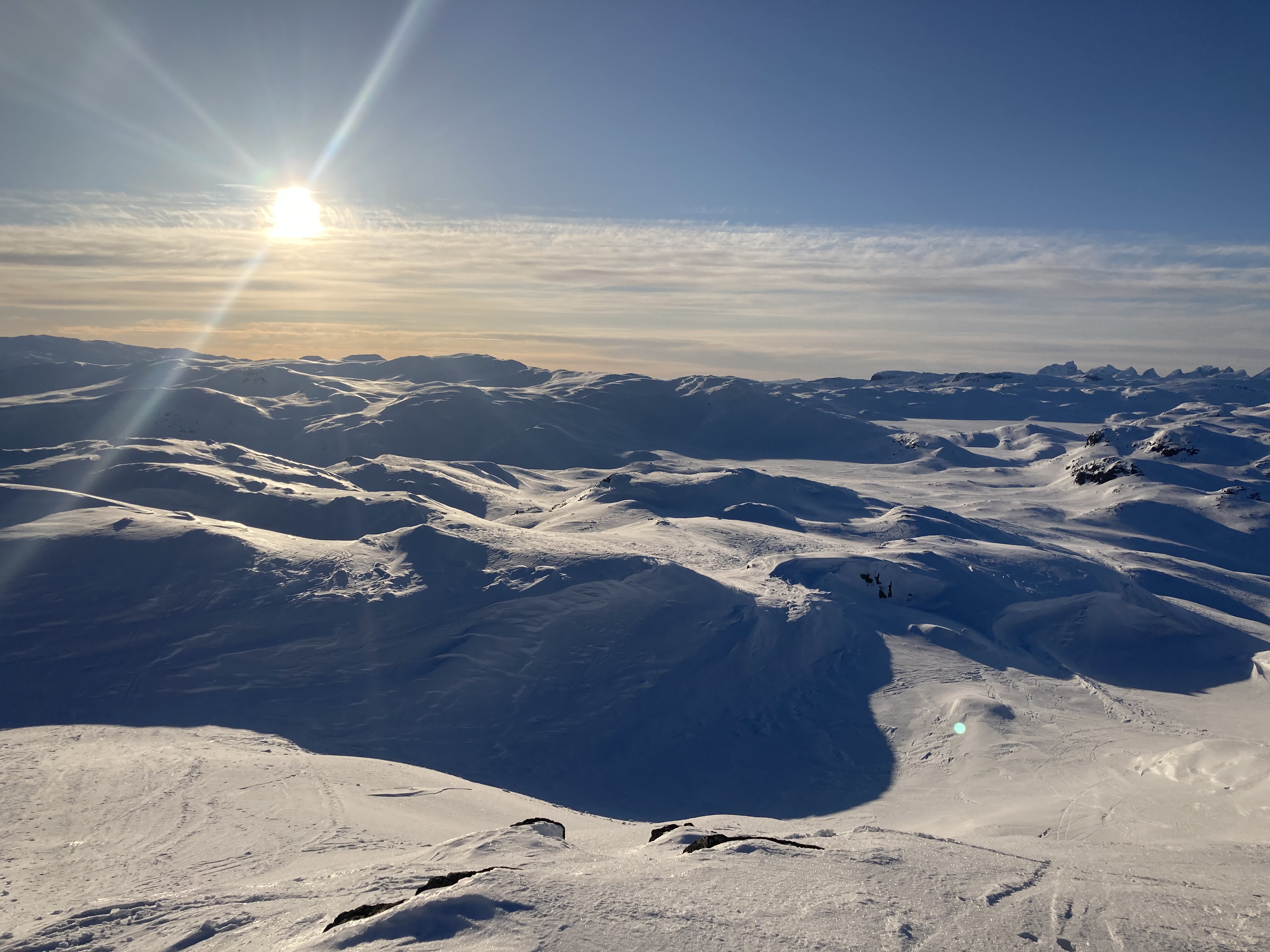 Der Gipfel auf 1404 Metern über dem Meeresspiegel bietet eine gute Aussicht auf die Umgebung. Von hier aus sieht man im Norden Tyin und die Jotunheimen-Berge, im Osten Øye und Vang, während sich die Landschaft nach Süden hin in Richtung Hemsedal und Filefjell öffnet.