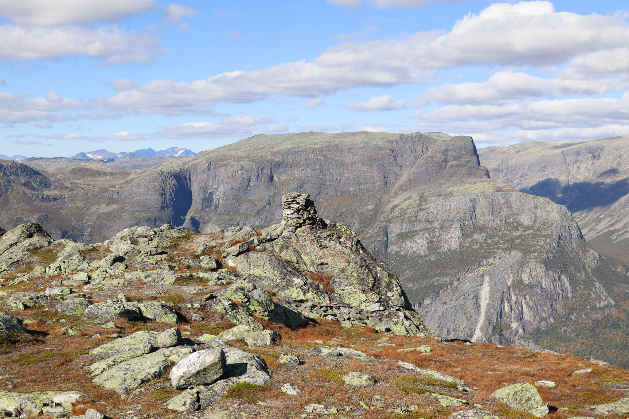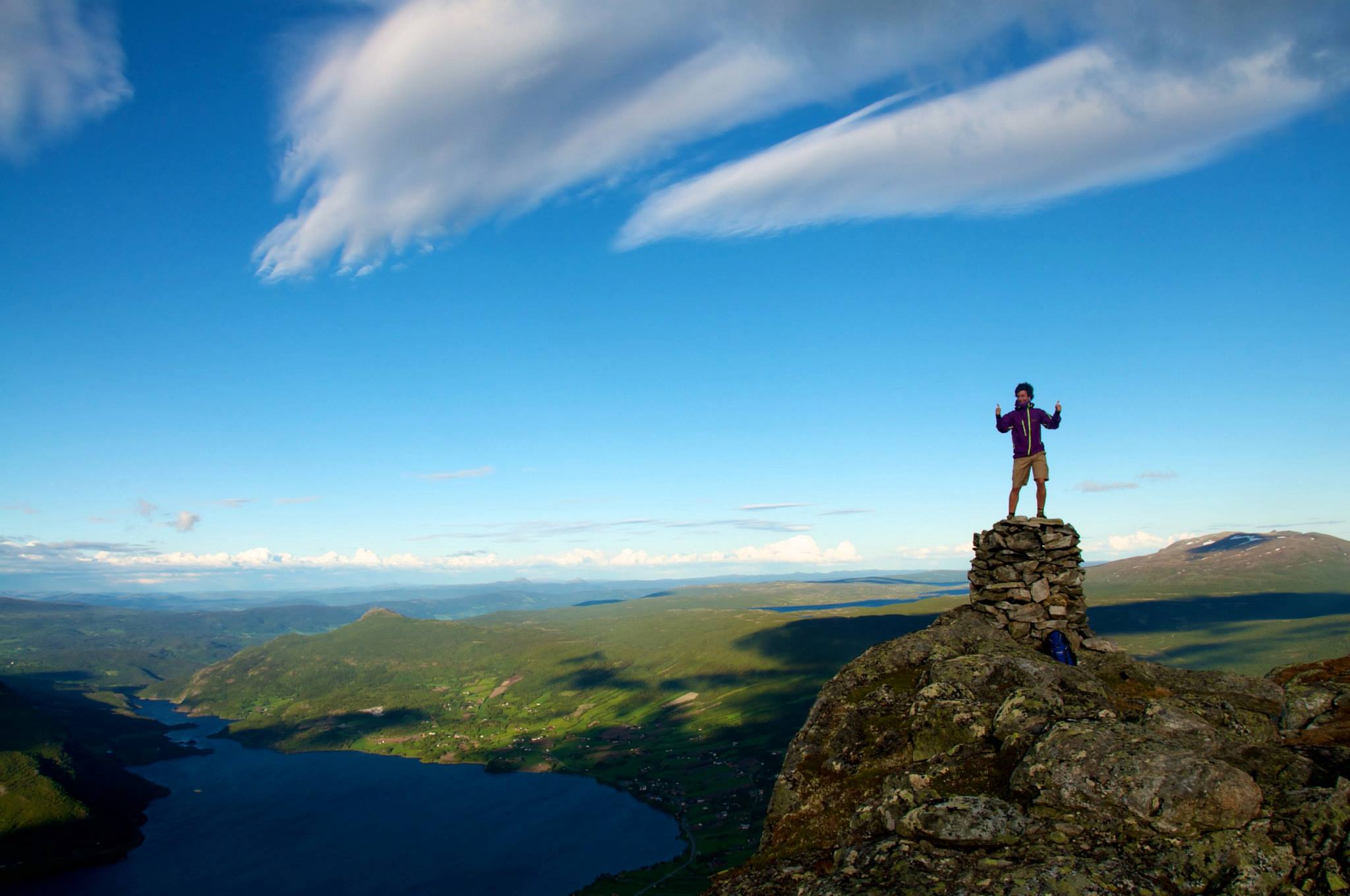 Wenn Sie schließlich „Ukseporten“, die letzte Kurve vor dem Gipfelplateau, passiert haben, empfehlen wir Ihnen dringend, weiter in Richtung des Gipfelsteinmanns zu gehen (siehe Karte unten). Von dort aus haben Sie einen fantastischen Blick hinunter nach Vang und Vangsmjøse, das tausend Meter tiefer liegt.
