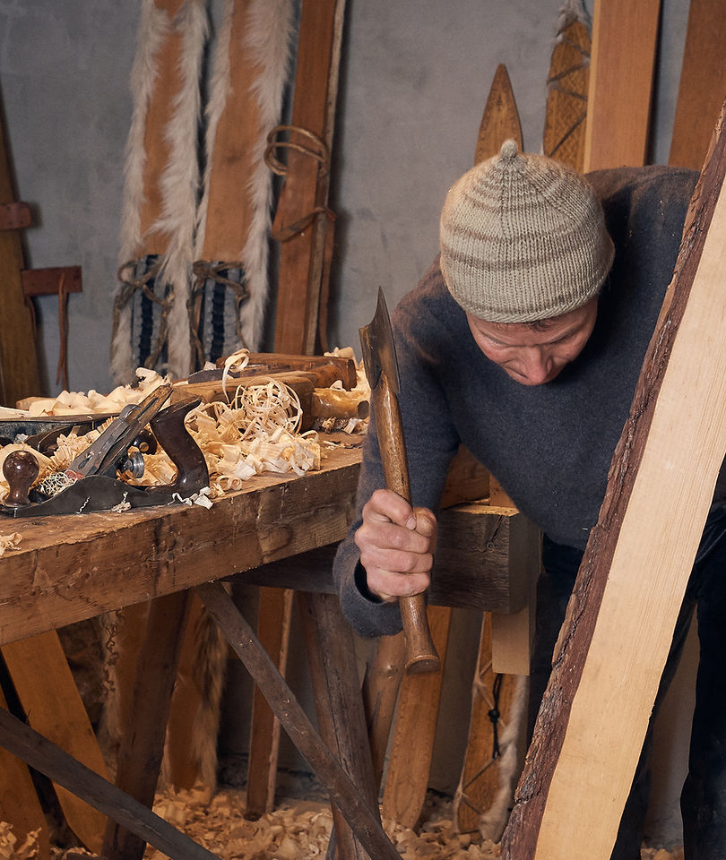 In the past, most people used wooden skis. Many people think this is old-fashioned – but wooden skis are actually a completely unique way of getting around and can be adapted to the individual's needs and wishes. Skimaker Thomas has been building on traditional wooden ski art for over 30 years, and developing skis for today's use.