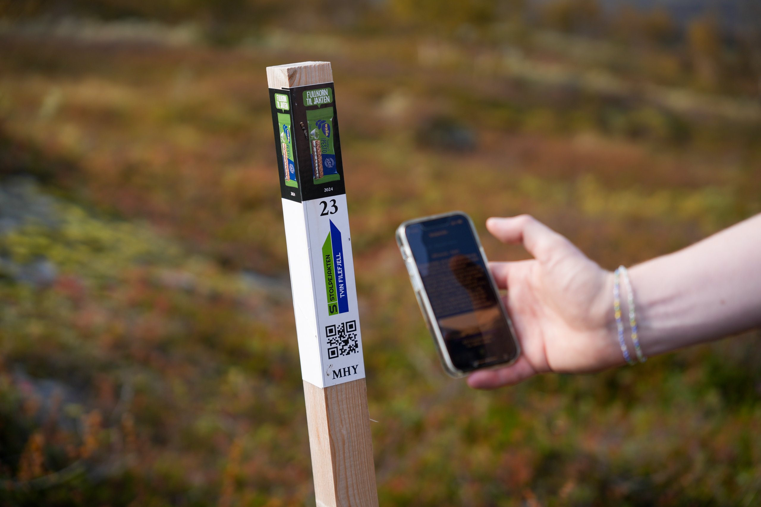 Download the “Stolpejakten” app for free from the App Store or Google Play to your phone, and take your phone out on a pole hunt. Scan the QR codes on the poles you find with the app on your phone. Behind each QR code you will find stories, information and some videos from the area. Poles registered with the app sync with stolpejakten.no the next time the device is connected to the internet.