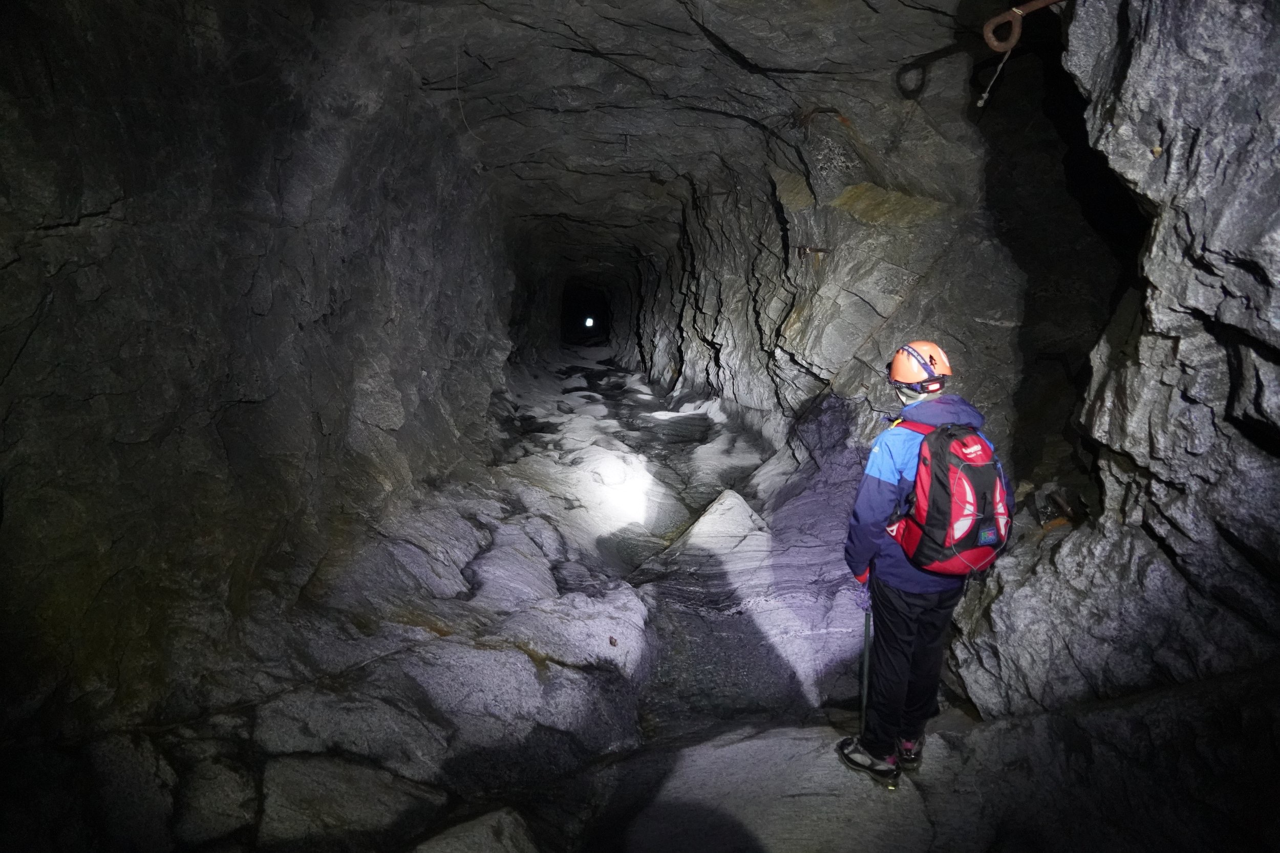 3 km hike on trail to the tunnel opening. 600 meters one way through the tunnel. Same way back.