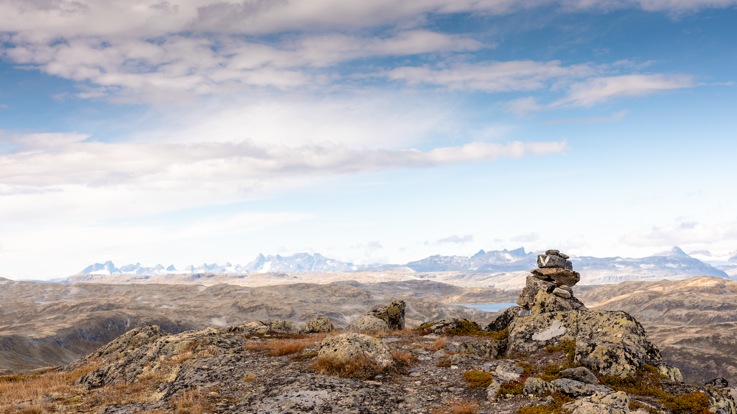 Skørsnøse has great views over the entire Jotunheimen region, southwards into Valdres and towards the Hemsedalsfjellet mountains.