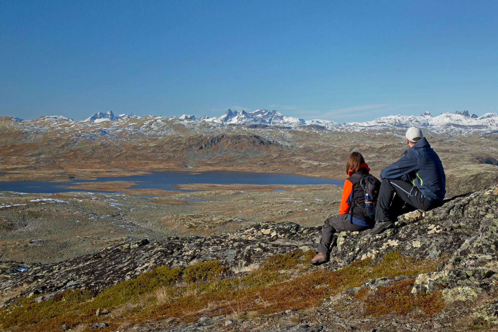Begin de wandeling door het Varden-huttenveld ten westen van Nystuen Hotell. Loop vervolgens steil omhoog langs de beek vanaf Vesleskardtjern. Sla dan rechtsaf langs de bergkam omhoog naar de top van Støgonøse. Wees voorzichtig, want de afdaling is steil. Otrøvatnet als je langs deze heuvelrug loopt.